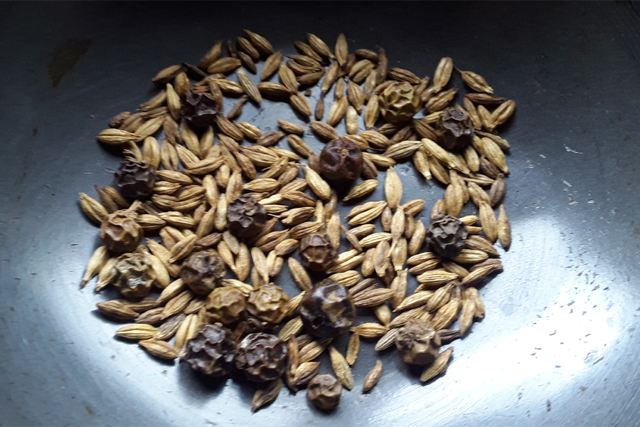 4. Heat a pan and roast cumin seeds and black pepper. If you like you can add a few drops of oil to fry the spices.