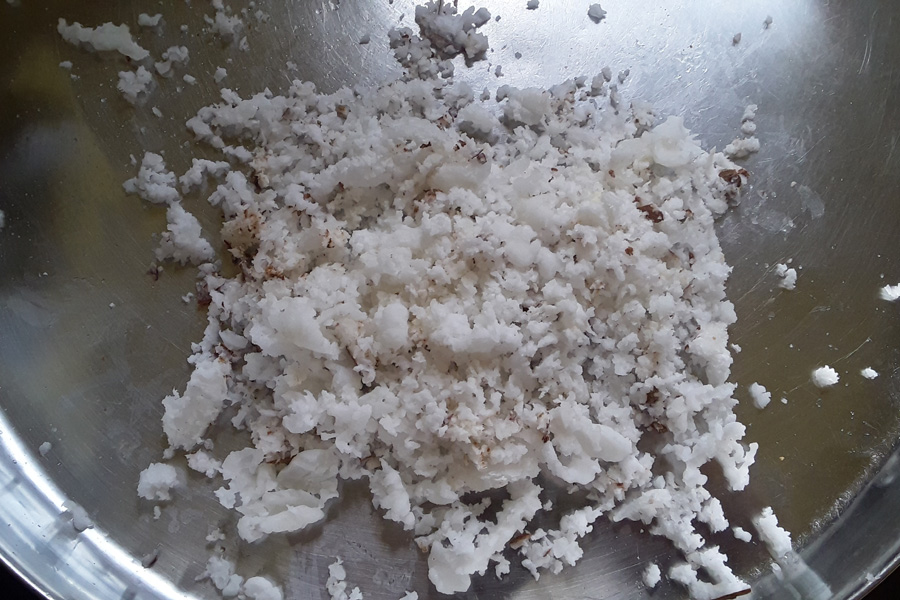 13. Take a fresh coconut and grate it - 2 to 3 tablespoons.