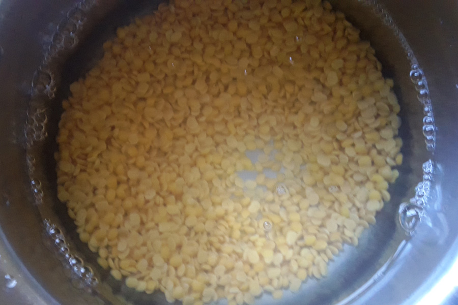 7. Add the lentils in a pan or vessel and add 3 cups water or as required.