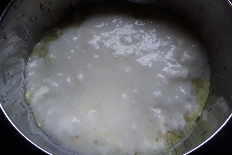 9. Add jaggery and salt as required. Mix well.