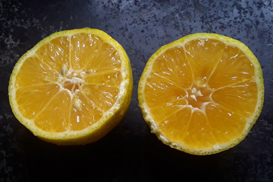 4. Cut a lemon and remove the seeds. This is how paanakada nimbe looks when cut, almost like an orange.