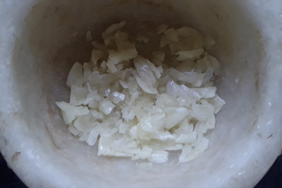 6. Wash and remove the garlic skin. Smash them using a mortar and pestle.