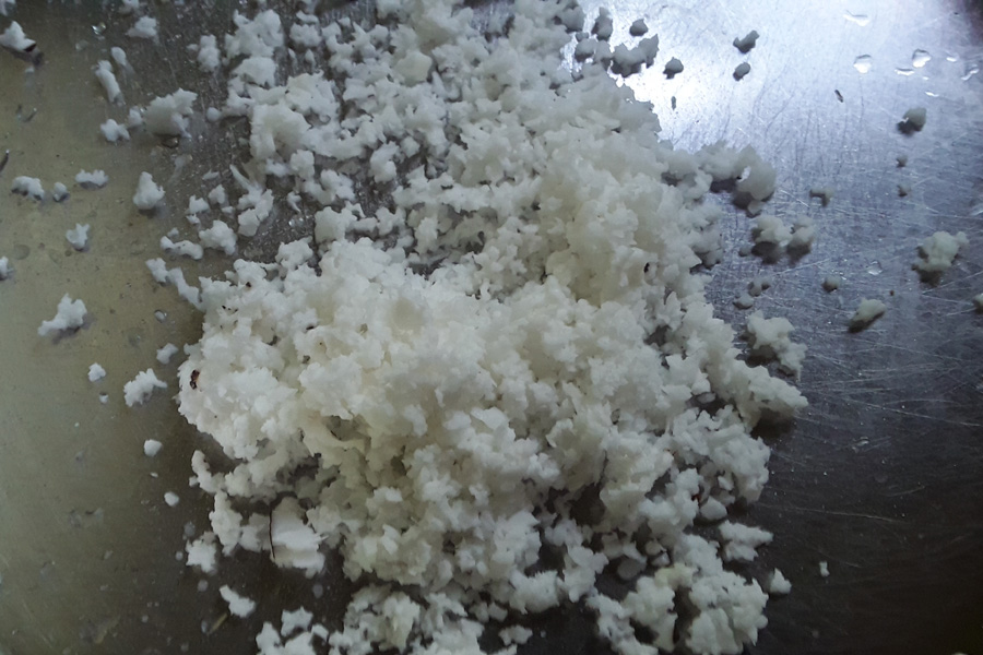 1. Take a fresh coconut and grate ¼ cup, tightly packed.