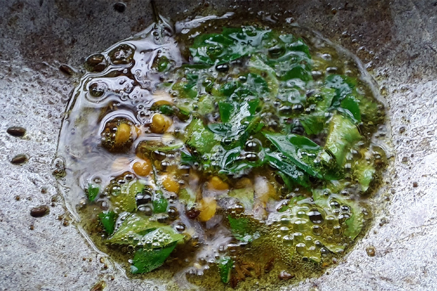 8. Add ½ teaspoon bengal gram. Let them get fried for a few seconds.