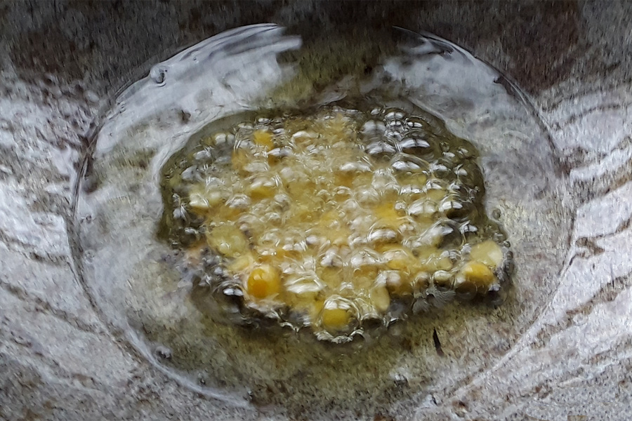 7. Heat ½ tablespoon of oil in a thick pan on low heat.