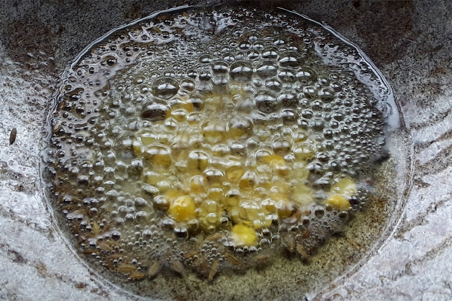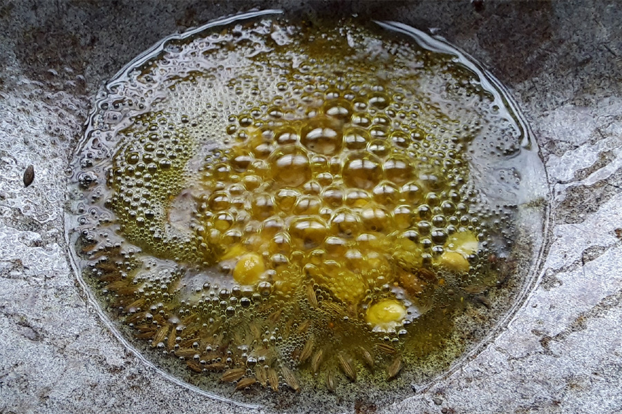 9. Then add cumin seeds, and mustard seeds. Let the mustard seeds crackle.