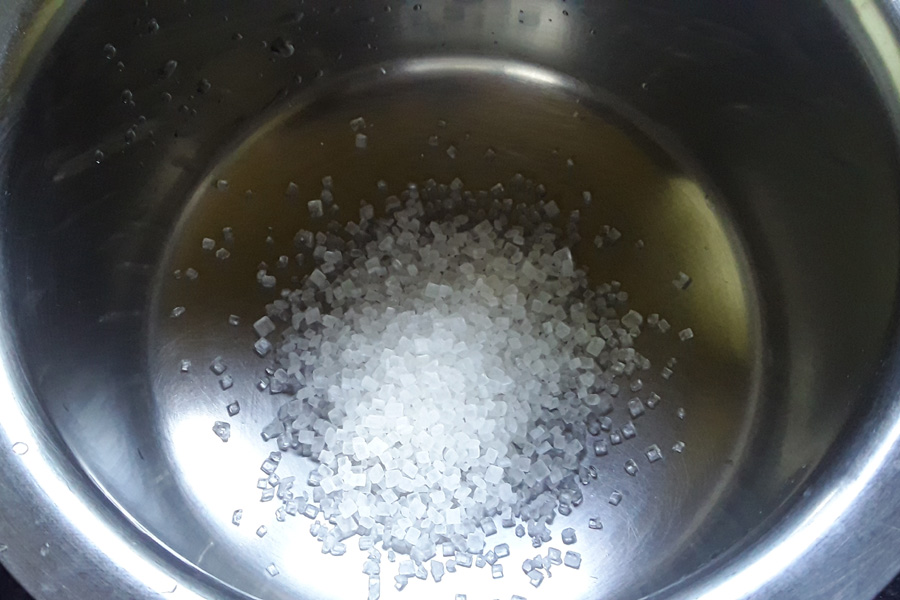 2. Add 3 cups of water and stir well till the sugar is completely dissolved.