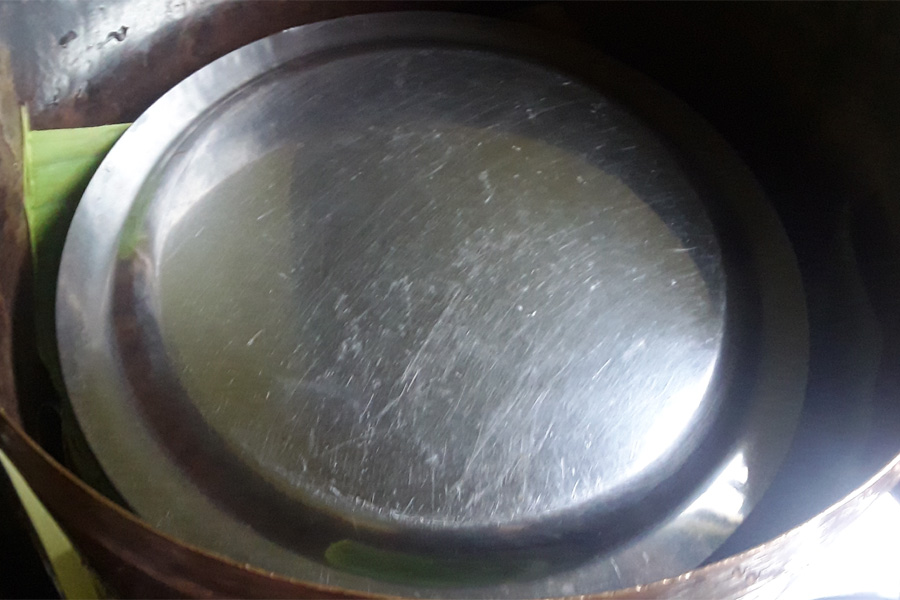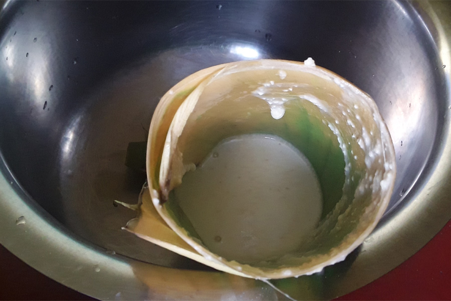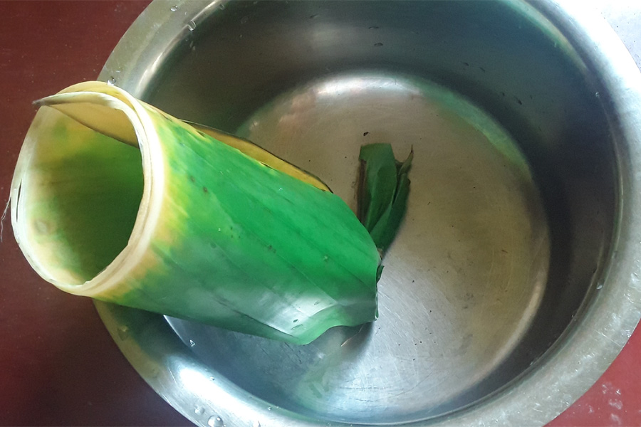 18. Now take one banana leaf kotte or cup and place it in a container.