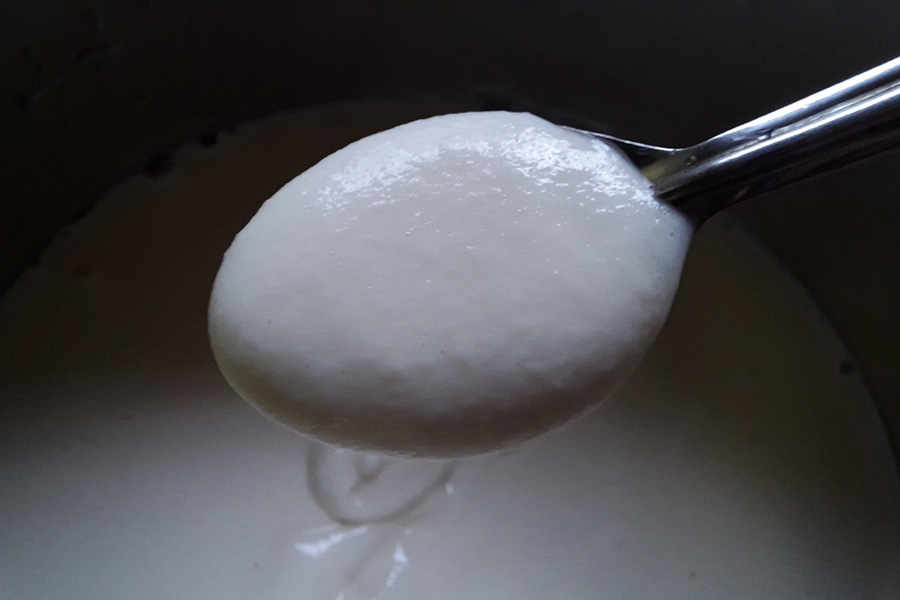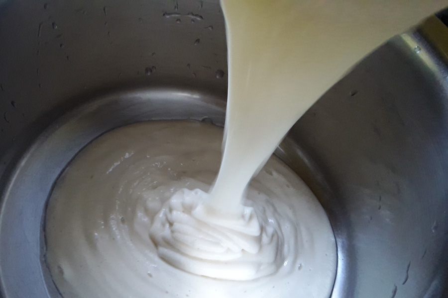 5. Take the batter in a large bowl. The consistency of the batter should be thick but easily flowing.