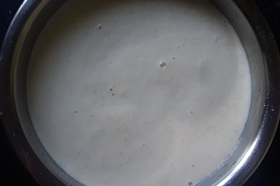 9. Mix very well with a spoon or spatula making sure that there are no lumps. Cover the batter and keep aside. Let it ferment for 8 to 9 hours.