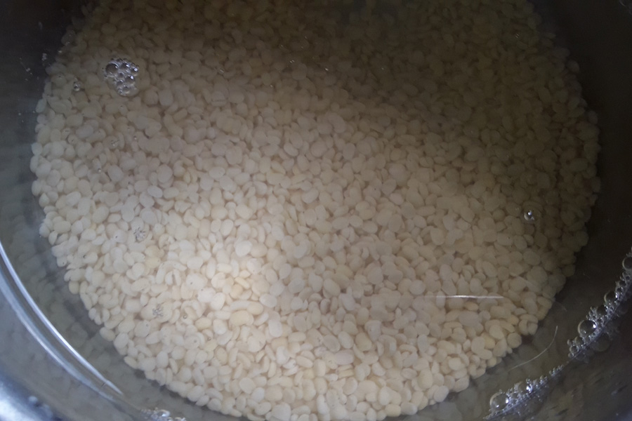 1. Take 1 cup husked black gram (uddina bele or urad dal) in a bowl. Rinse the lentils 3 to 4 times or until clean in fresh water and then soak in water for 3 to 4 hours.