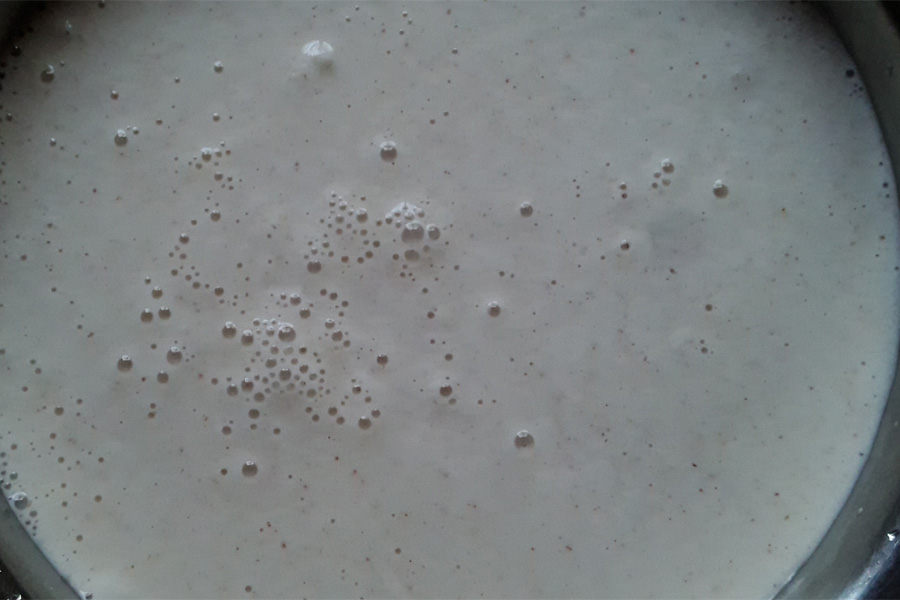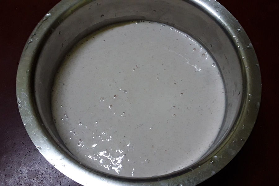 7. Take the batter in a bowl. Cover and keep overnight. Let the batter settle.