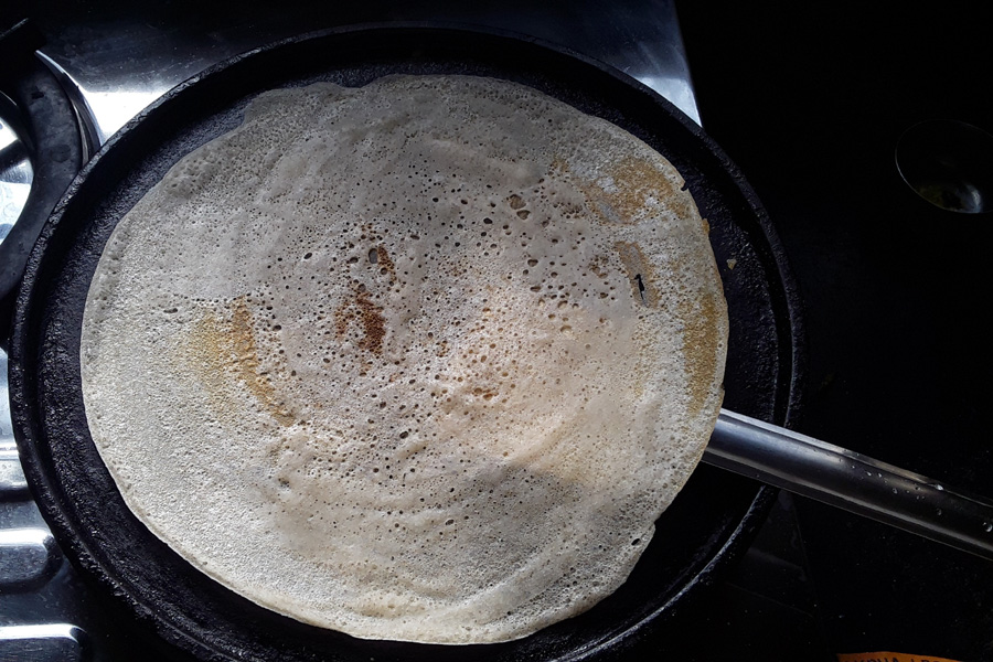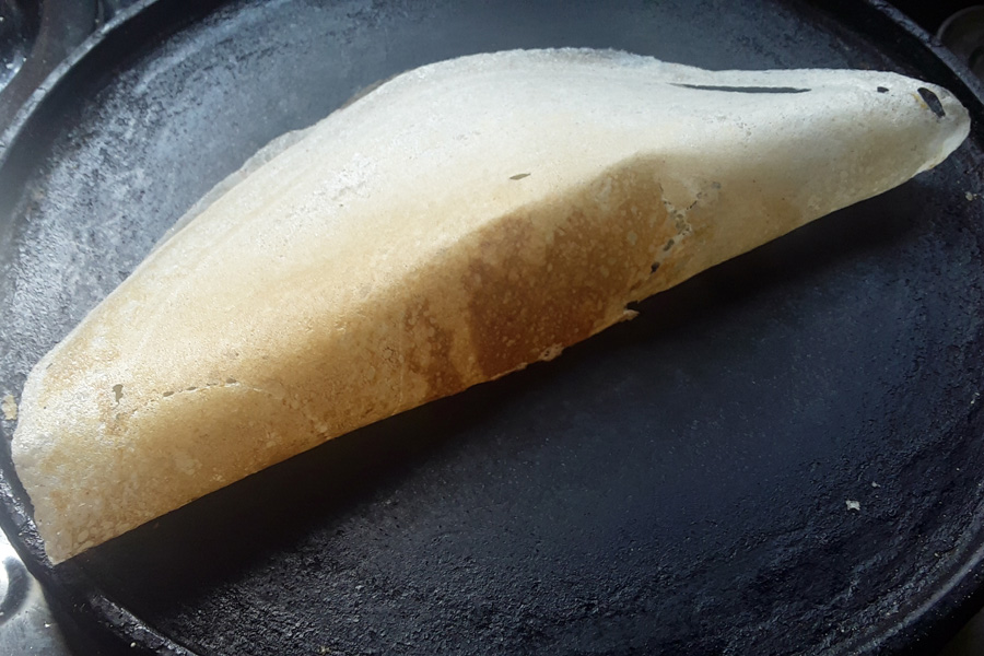 15. Cook the tellevu on low to medium heat to crispy or medium to high heat to make it little soft. Regulate the heat as required.