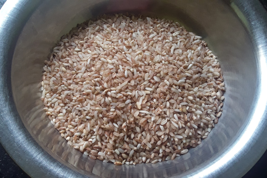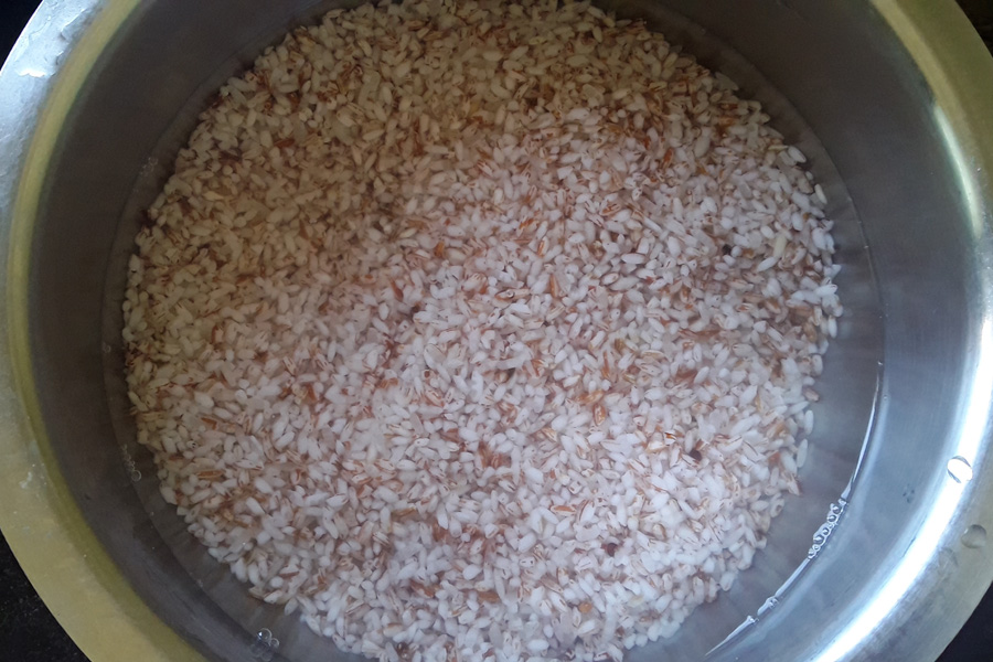 1. Take 1 cup of rice in a bowl. (Unpolished rice is used here, so looks slightly brown / red).