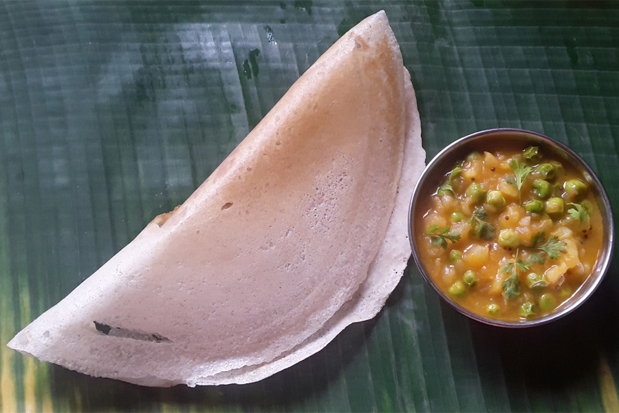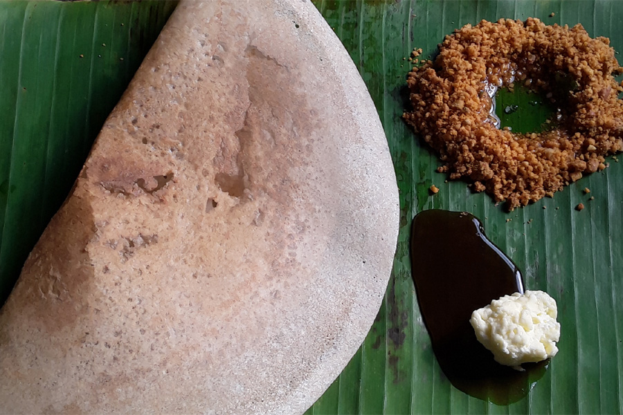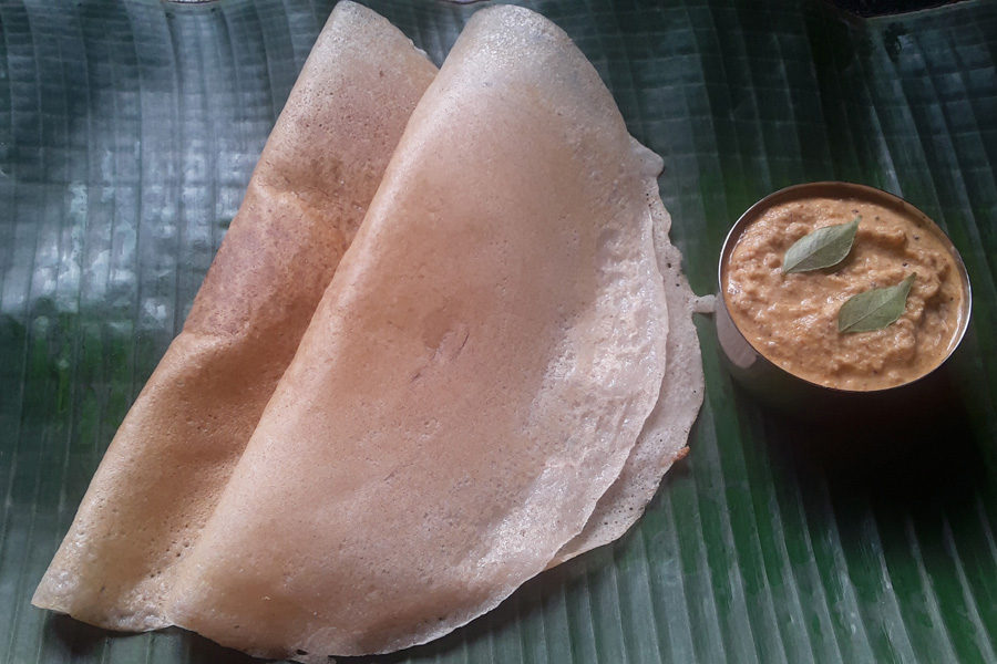 18. Serve tellevu hot with any curry or coconut chutney or huli (vegetable-lentil stew / sambar) or chutney powder or liquid jaggey with butter.