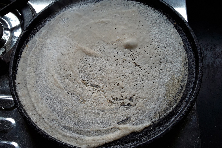 you need to be really quick as batter would start cooking as soon as you pour. And, tellevu has to be thin.