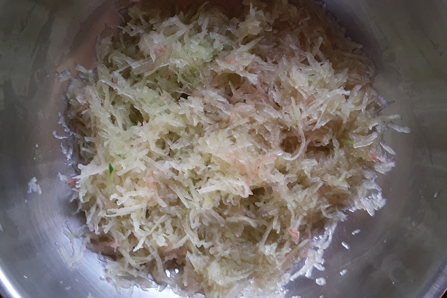 If you like you can even grate and add green skin as well. It is like cucumber skin. I add or discard depending on the quality of the skin.