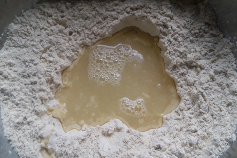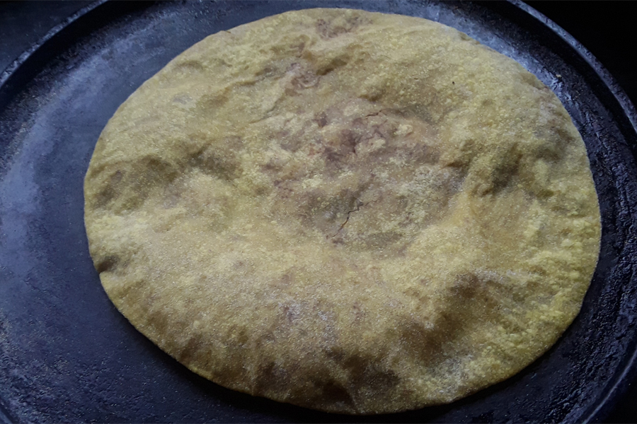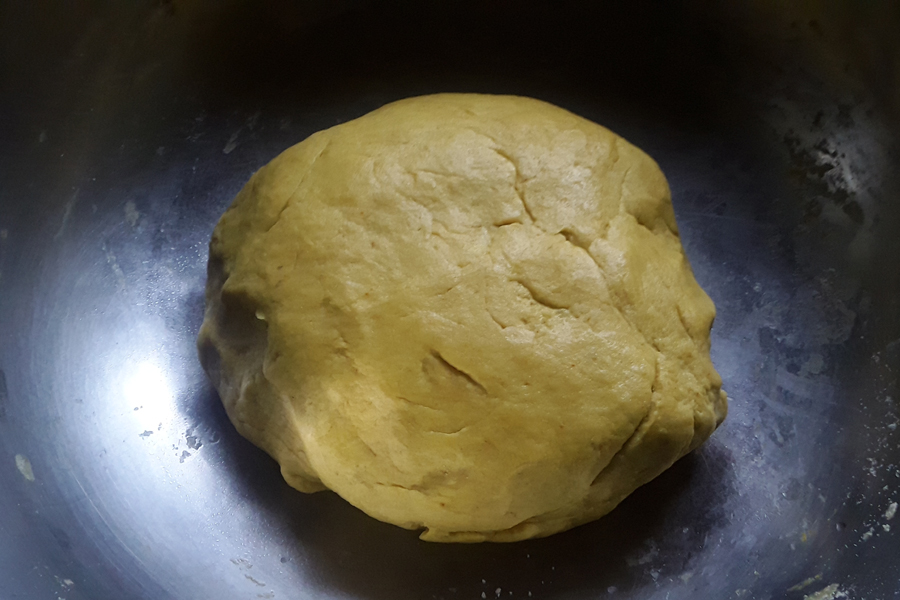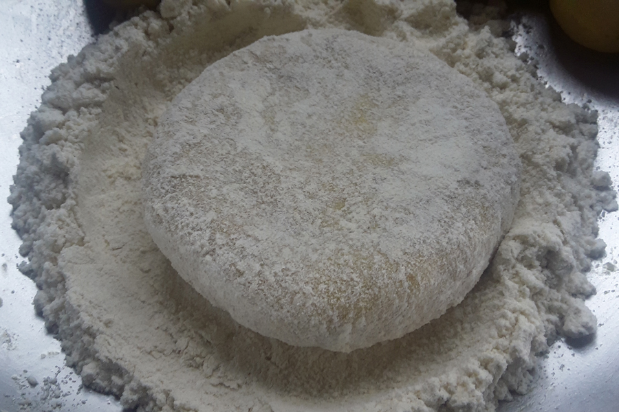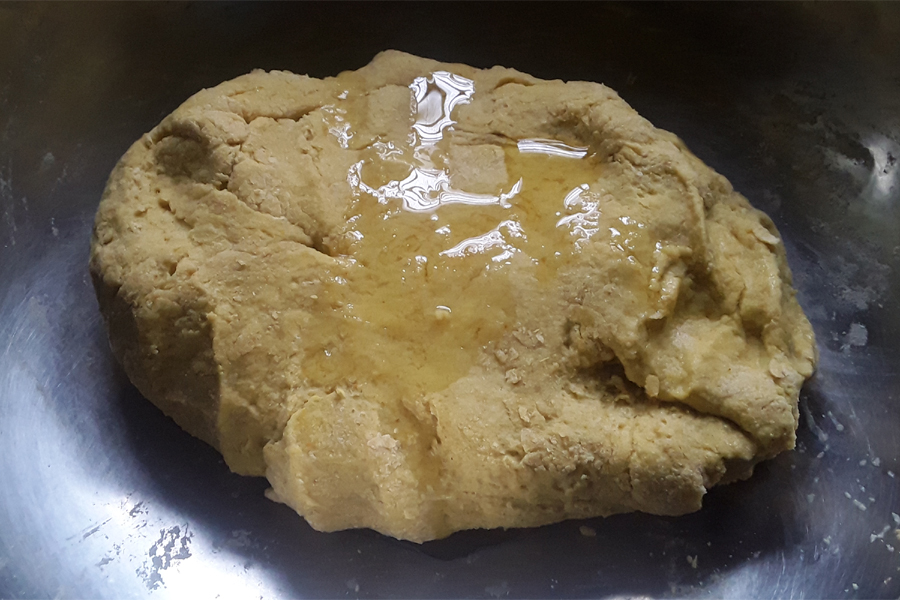 Whole wheat flour covering dough should be of elastic texture. This has to bind and hold the hoorna or stuffing properly.
