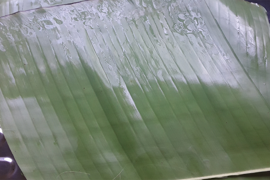 5. Take 2 pieces of banana leaf and wash them thoroughly with water or clean them with wet clean cloth and keep aside.