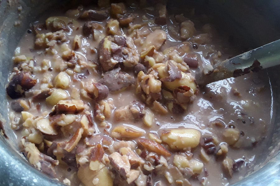 There are two methods to make Hoorna, the sweet stuffing, with jackfruit seeds. You can choose the one you are comfortable with.