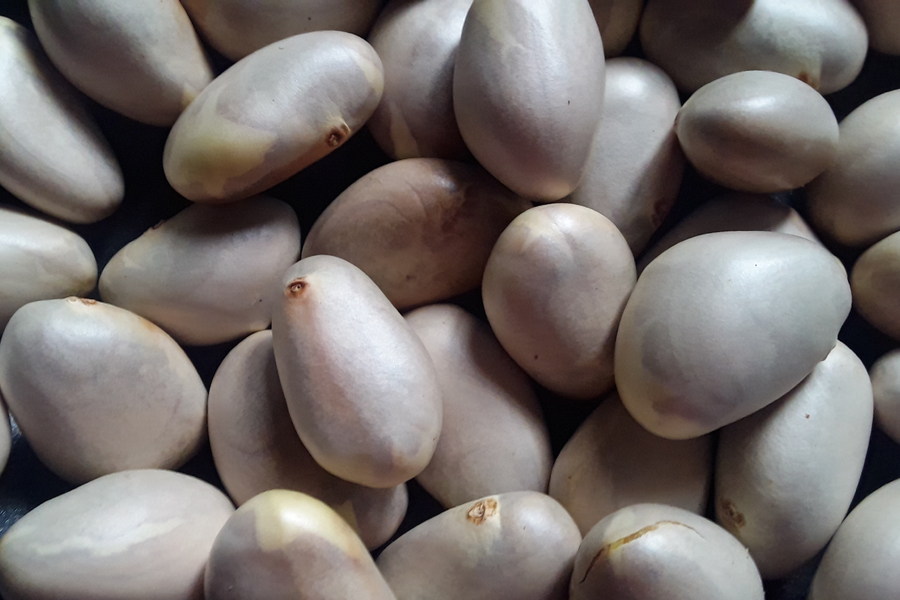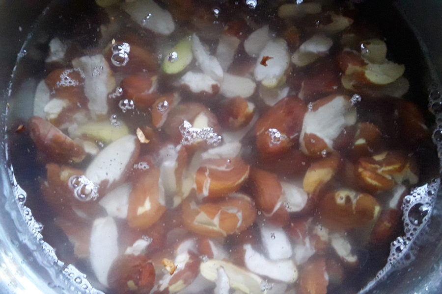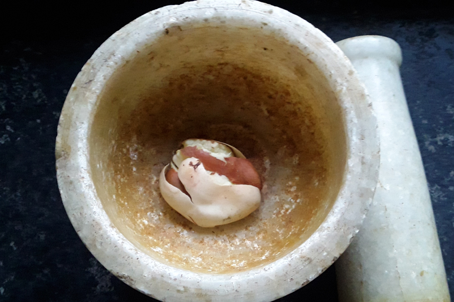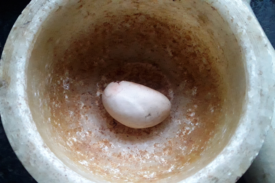 1. Take jackfruit seeds. Take each of them in a mortar and smash with a pestle.
