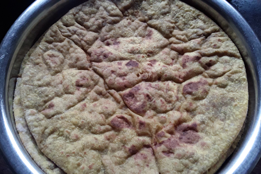 While making holige, if the dough becomes too thin add some whole wheat flour and mix well. This happens when making holige in larger quantity.