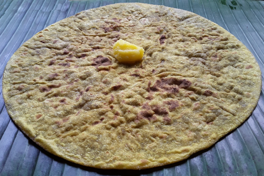 28. Serve the holige hot or warm or at room temperature with fresh ghee. If you are a vegan you can eat holige as-is.