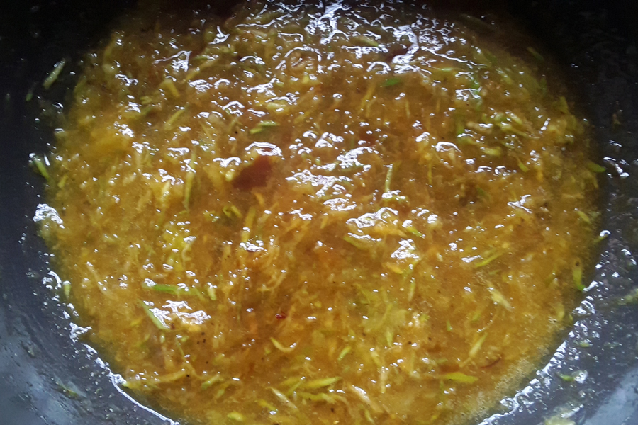 Note: One of the mangoes was slightly ripe, and it got juiced out when grated. So do not be surprised to see juice in the below picture.