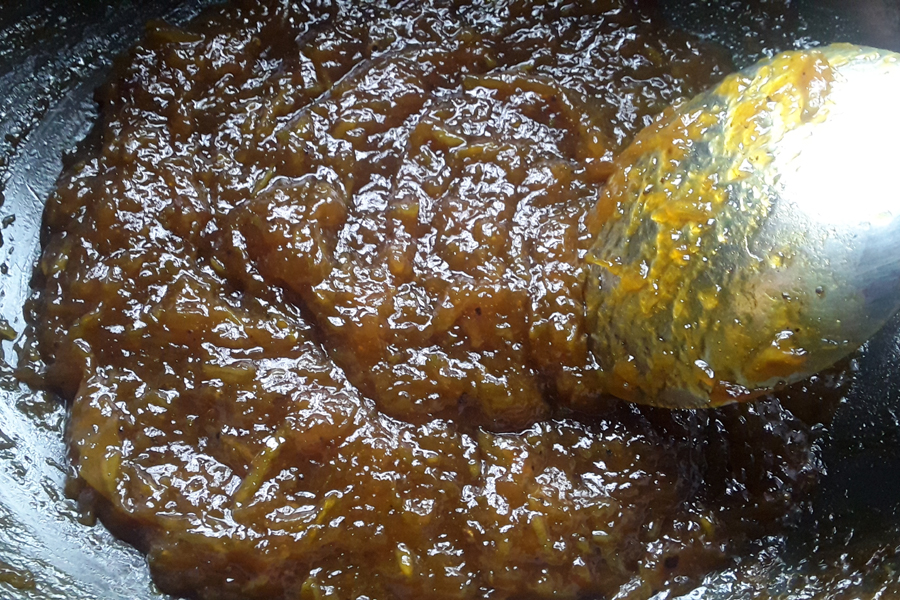 A gulamba is typically a fruit or berry sweet preserve. Fruits or berries are cooked in jaggery along with optional spices to get a consistency like jam or syrup.