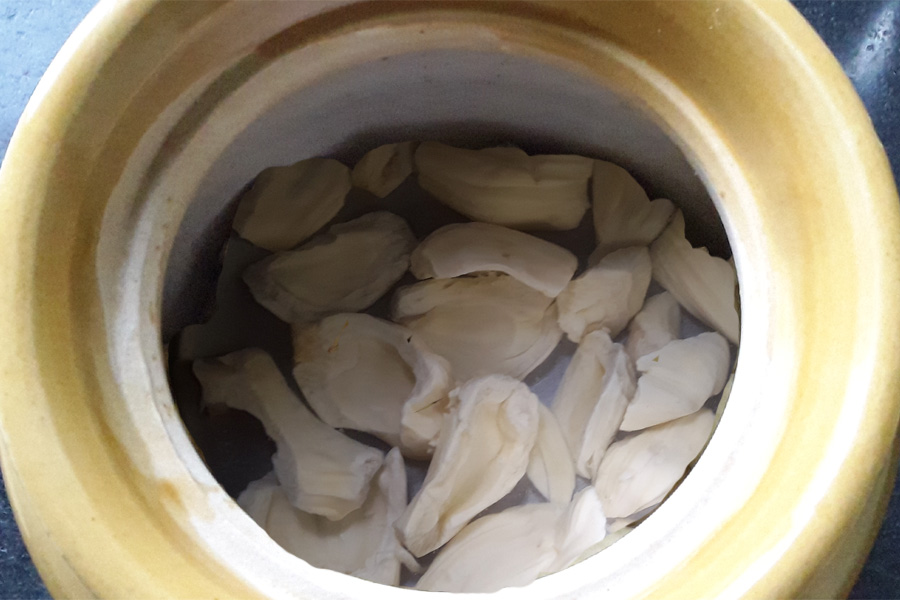 6. Transform the salt mixed jackfruit pulp to a jar.