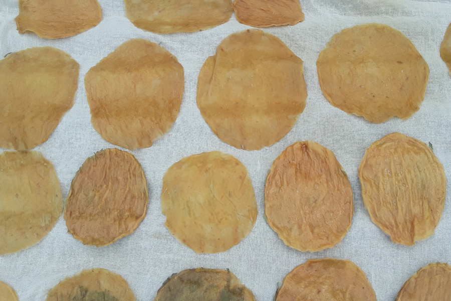 11. Next day spread them on a muslin cloth in sun, keeping the backside facing sun and dry them. Dry happala for 5 to 6 days.