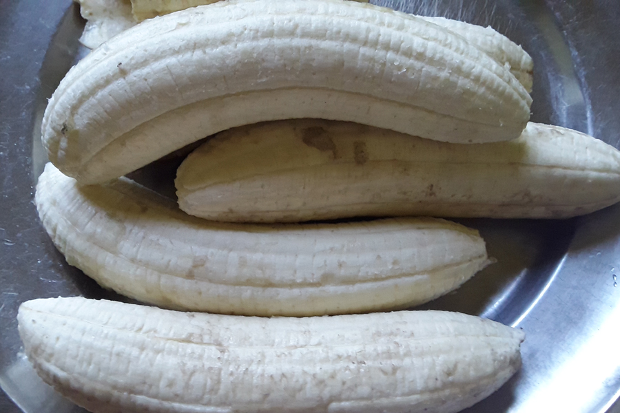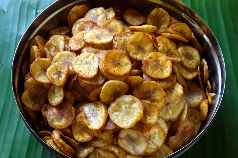 Banana: Only specific banana varieties like kari bale, baragi bale, nendra bale and similar kind are used for making chips. Banana should be raw (unripe). Otherwise chips might not become crisp. Usually chips are made on the same day when it is picked from tree.