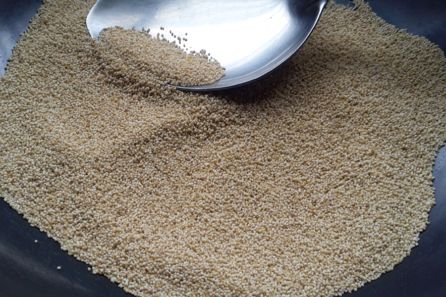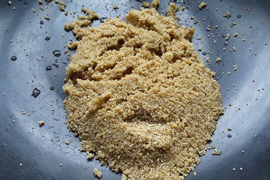 4. Roast on low flame until the poppy seeds starts to pop. Let it cool.