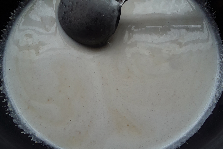 12. Switch off and add milk. Mix well.