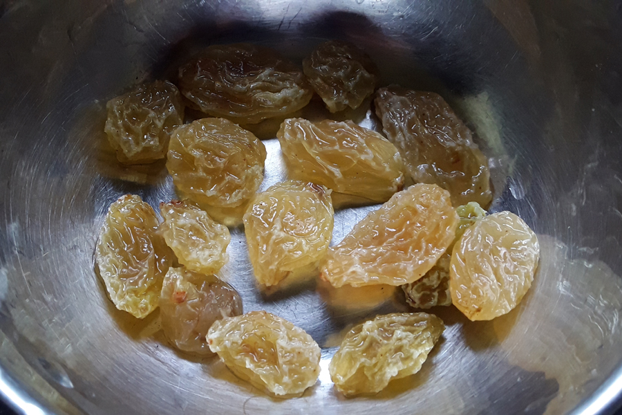 13. Rinse dry grapes and add to the paayasa.
