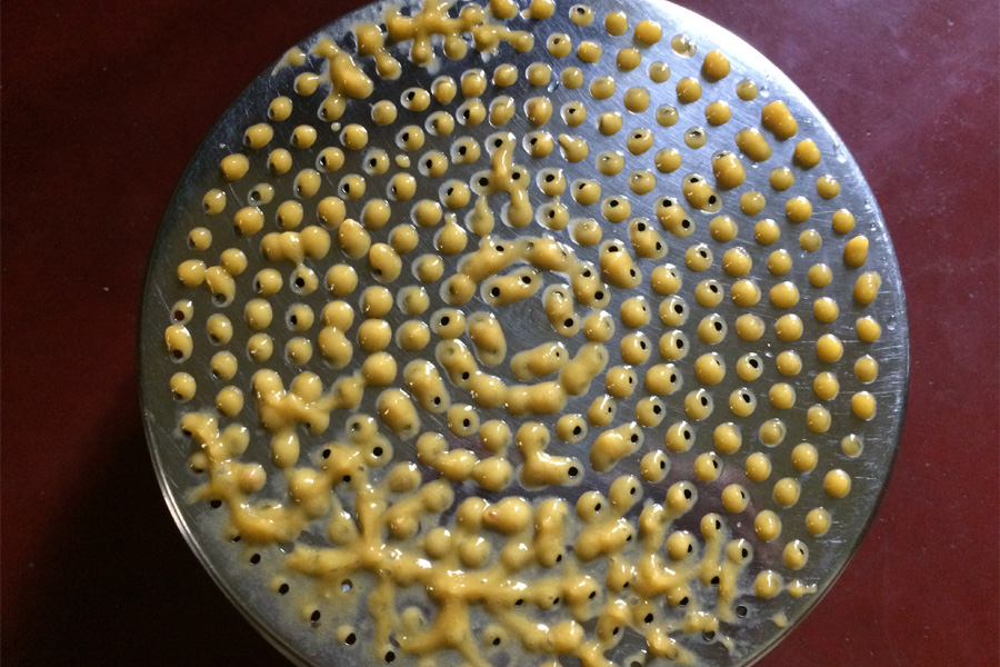 13. Now, take some pulp and place them on the sieve. If you prefer, you can remove the seeds before moving to next step.