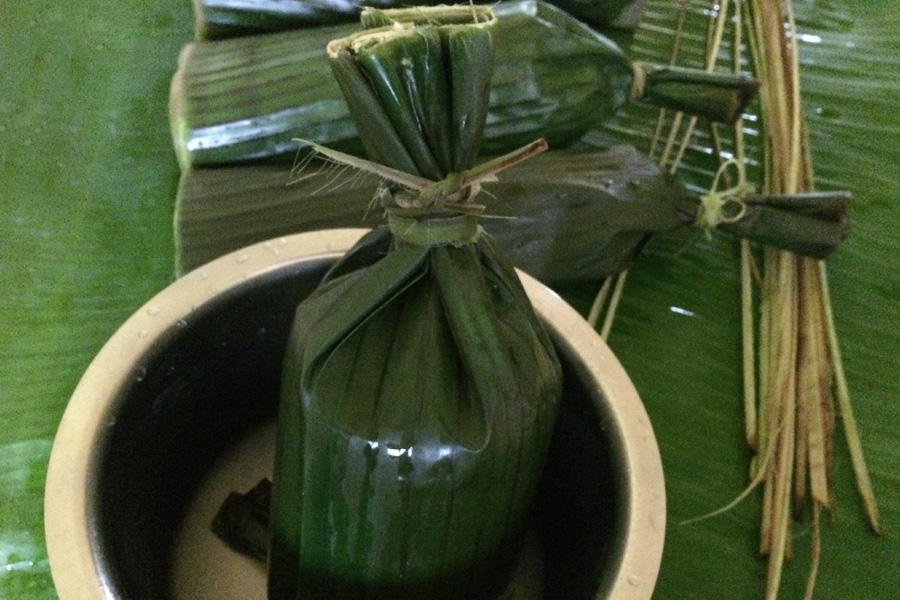 30. If you have no access to banana leaf, you can steam kadbu in a wide bowl.