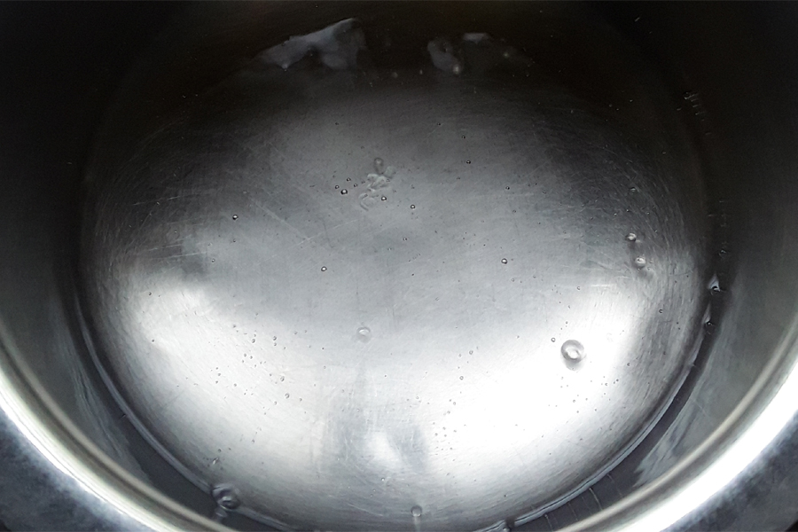3. Add hot water as required and mix well. Do not knead the dough. Just mix well, cover and keep aside for about 30 minutes. The dough should be firm.