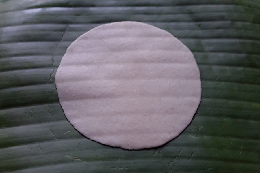 8. With a rolling board and pin, gently roll to a thin round shape. While rolling, you can use dry wheat / sorghum flour to dust the dough ball or spread little oil on the rolling board surface.