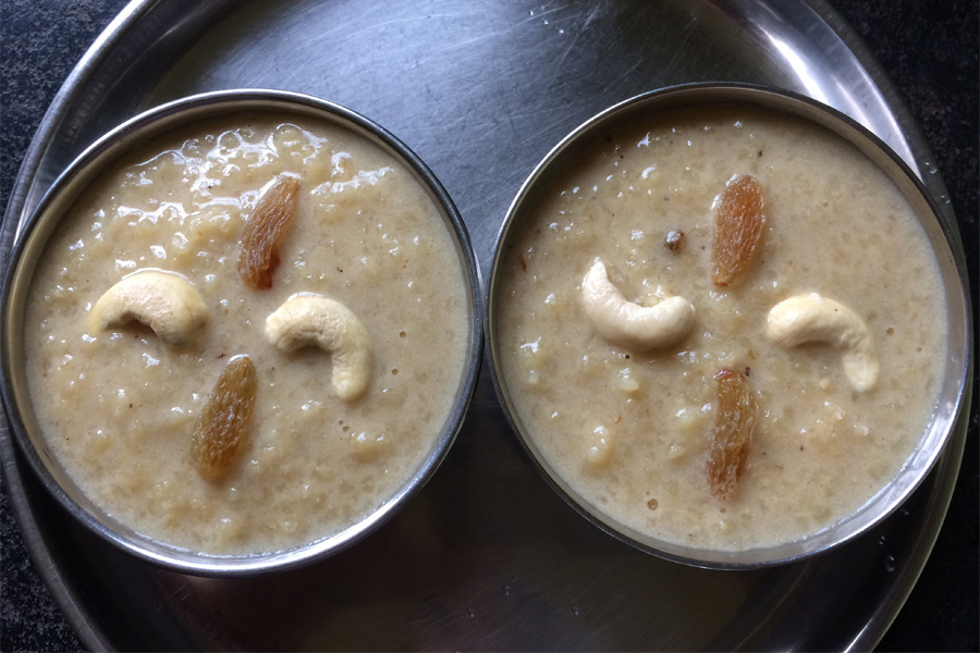 12. Serve godhi kadi paayasa hot or warm or cold. You can also serve with fresh ghee.