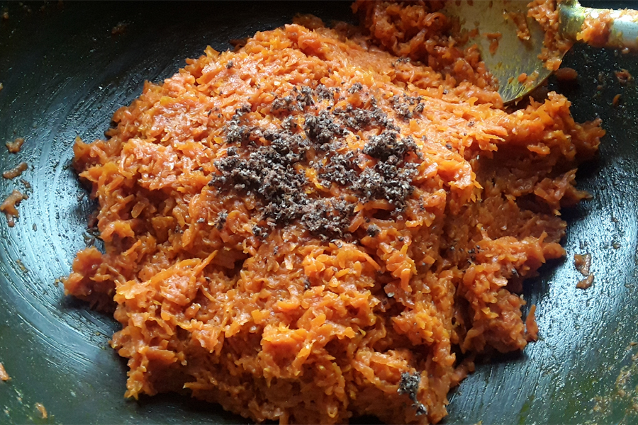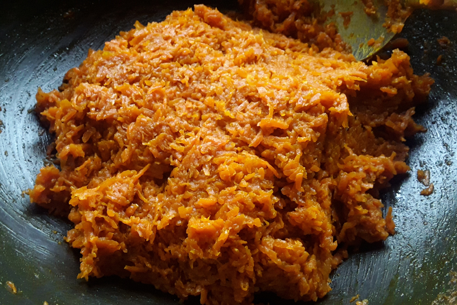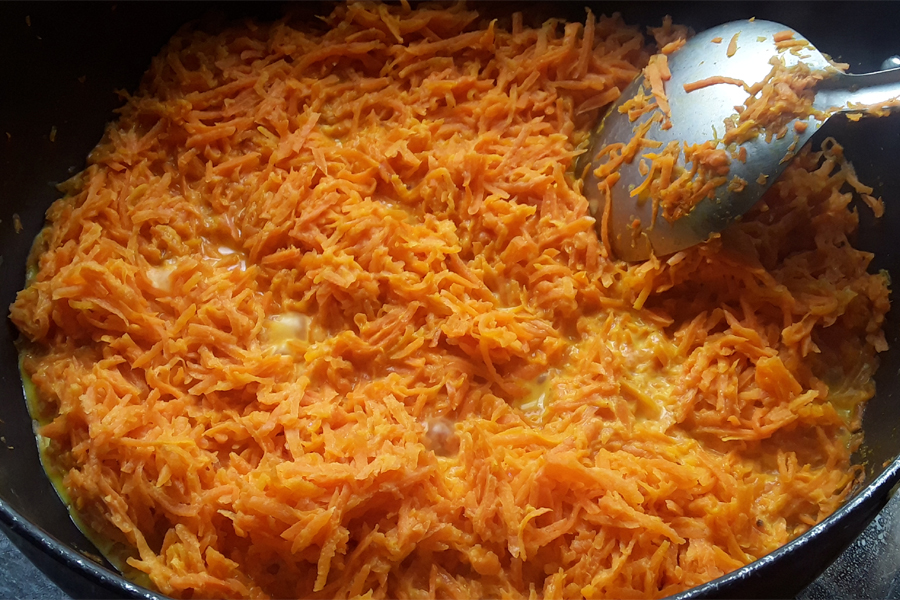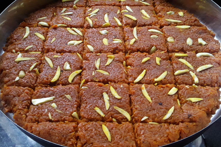 20. Serve, eat, or store carrot halwa or burfi.