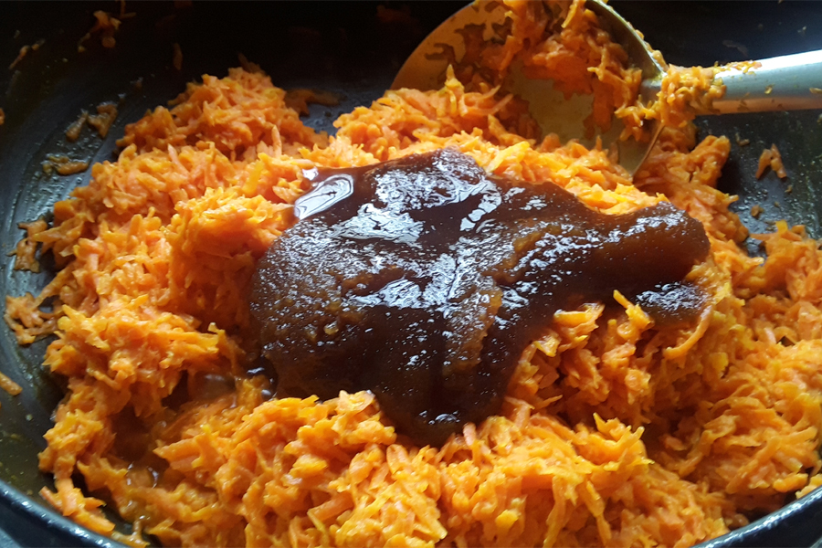 6. Add grated carrots and mix well.