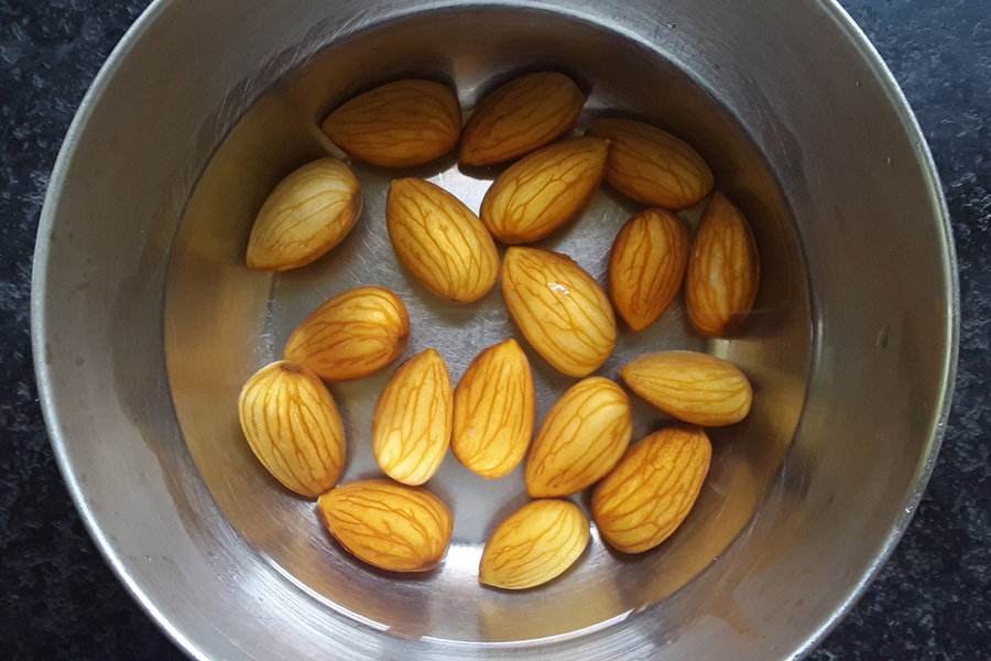 1. Rinse and soak almonds for about 5 to 6 hours or overnight.