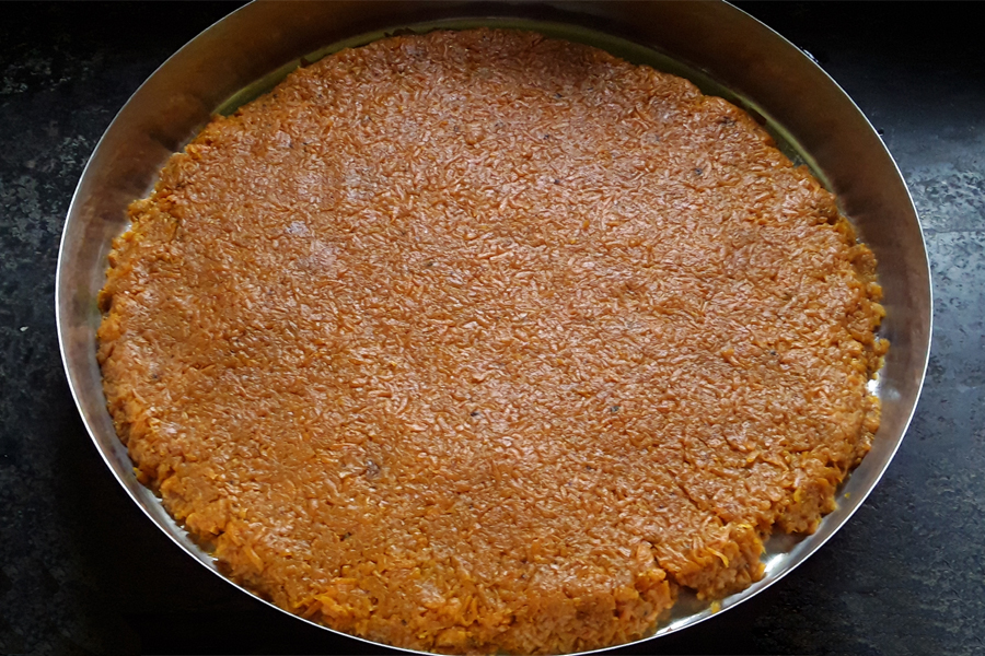 16. Pour the mixture on the greased plate or tray.