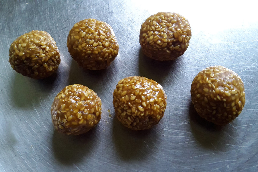 While making ellunde in more numbers, the last batch of the ellunde will be little dry due to reheating. As far as you like the sesame and jaggery combination, that is perfectly OK!