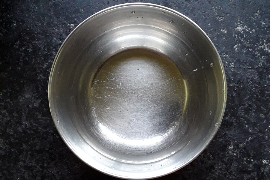 10. To check the soft ball consistency, take the water in a small bowl that was kept handy earlier. Drop a small portion of the mixture in the water and remove it. It should form a soft ball itself and turns firm on cooling.