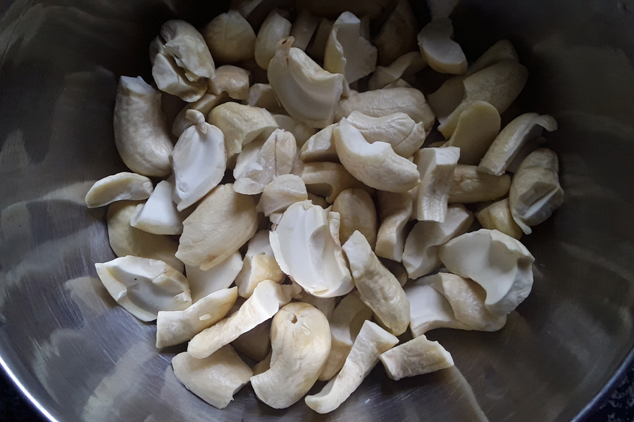 1. Remove and rinse cardamom seeds. Rinse cashews and cut them to pieces. If you prefer, you can dry roast the cashews.