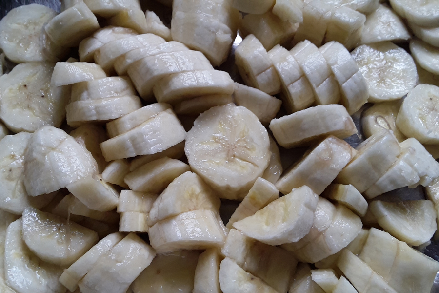 With its super-soft-spongy and chewy texture, banana and jaggery flavors, slight aroma of ghee, and a trace of cardamom, this is a delicious and undeniably decadent dessert of banana. This is also a way of preserving this humble and nourishing fruit, when there are more.