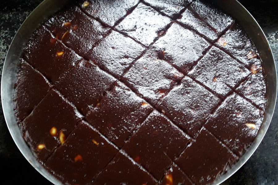 14. Then cut into desired shapes. Store halwa in an airtight container and use as required.