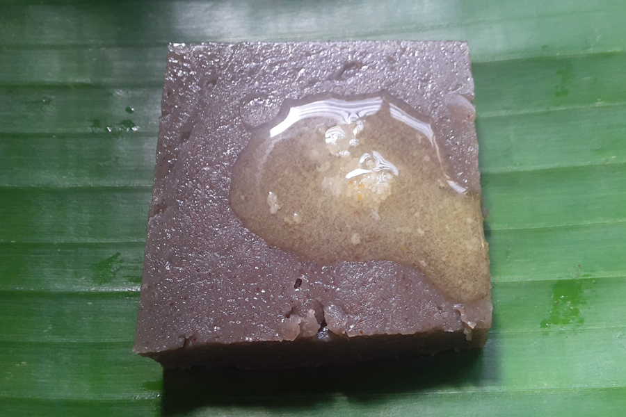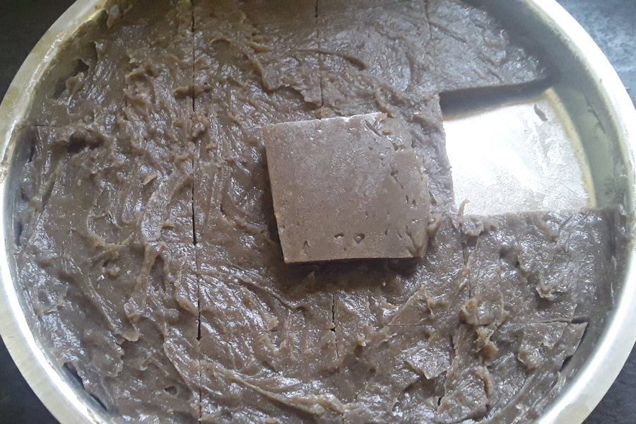 This marvelous Manni or fudge is seasonal and made of sugarcane juice and rice batter. This winter special Manni is prepared during Aalemane (sugarcane harvest) with fresh sugarcane juice. With deep sugarcane juice flavour, this delicious Manni is quite popular during the season.